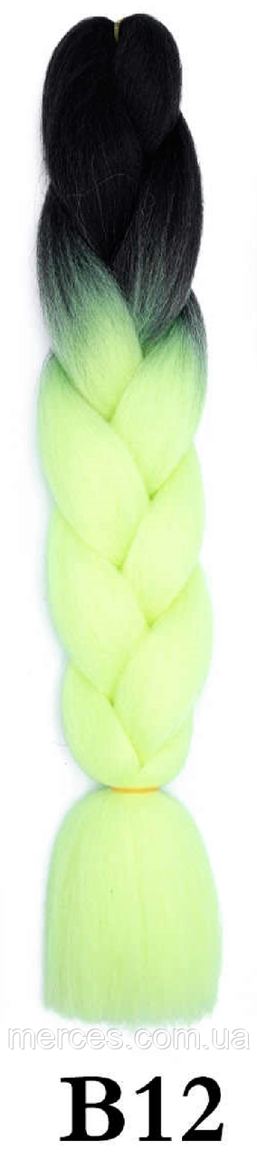 Канекалон чорний + жовто-зелений салатовий світлий 60 ± 5 см Вага 100 ± 5 г Термостійкий двоколірний Jumbo В12