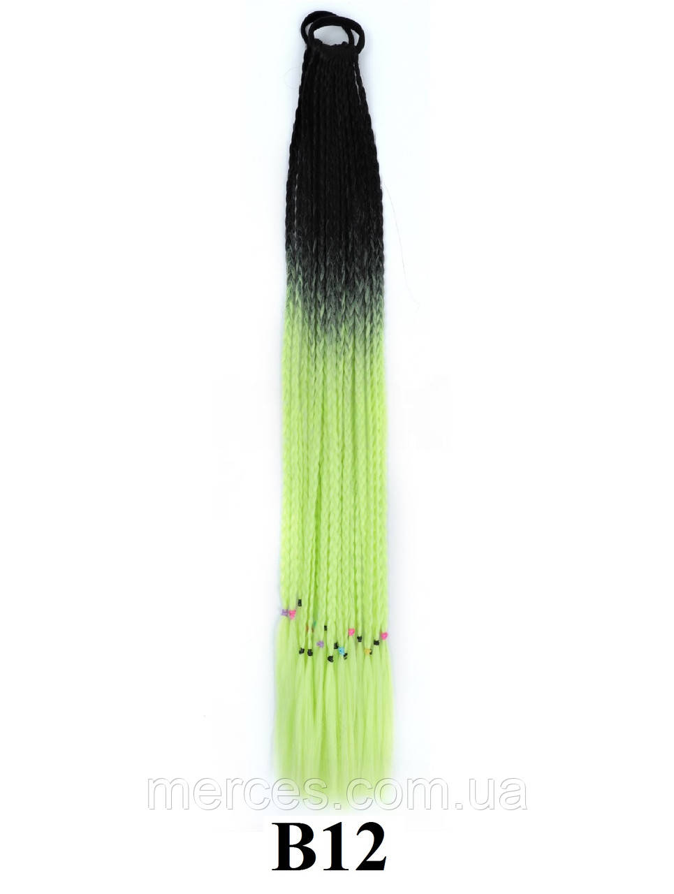 Двоколірні омбре чорно жовто-зелені салатові світлі кіски Зізі або Афрокосички - дуже зручний і легкий у використанні аксесуар для створення стильних образів і зачісок. Синтетичний матеріал, який не викликає алергії, відрізняється високою зносостійкістю та міцністю.